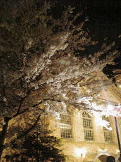 そこで、散り始めだったけど、照明のお陰で綺麗に見えた桜を写メる。